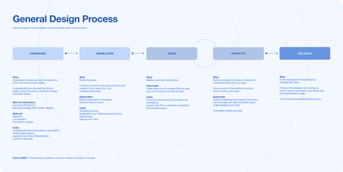 Given that the company had no established design process, my first step was to introduce one. I visually outlined a general design process that could be adopted across the company for solving design-related problems. This included educating the team on the importance of user journey mapping, which helped us challenge assumptions and identify opportunities. We created these maps based on conversations with users from the three largest companies using our system, ensuring that our design decisions were grounded in real user needs.